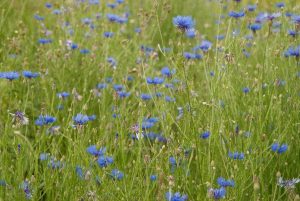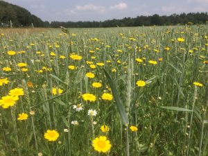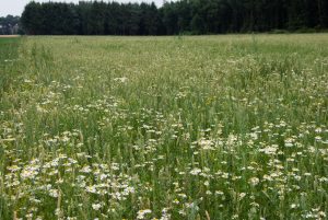 Wintergraanakker (rogge) met bijbehorende akkerflora: korenbloem en kamille